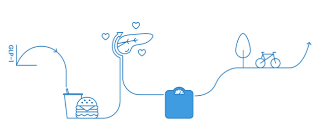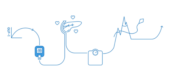 用GLP-1受體激動劑治療2型糖尿病患者可以使其胰島素分泌增加、胰島素抵抗降低、血糖降低以及體重減輕。